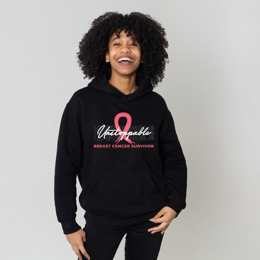 Black Quality Vinyl Printed Breast Cancer Survivor Hoodie