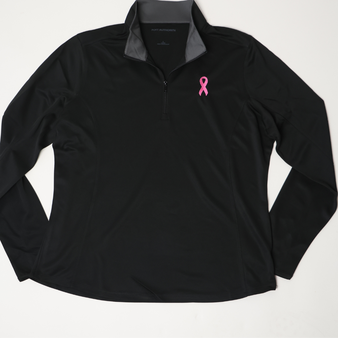 Breathable Half Zip breast cancer embroidered Breast cancer ribbon.